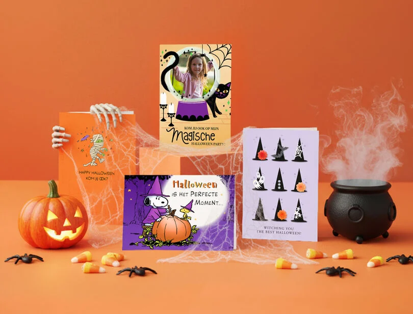 Nodig je vrienden uit voor een angstaanjagend Halloweenfeest of feliciteer de jarige met een spookachtige verjaardagskaart.
